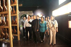 6月28日下午,省人大常委會(huì)副主任馮明一行在金華市人大常委會(huì)副主任陳志身等的陪同下,參觀考察了建于金字火腿內(nèi)的中國火腿博覽館和世界火腿博覽館,了解金華火腿的行業(yè)發(fā)展現(xiàn)狀。 金字火腿總經(jīng)理吳月肖向馮明一行介紹了金華火腿的歷史文化、傳統(tǒng)制作工藝、營養(yǎng)價(jià)值和儲(chǔ)存食用方法。馮明指出,金華火腿雖然是一個(gè)傳統(tǒng)行業(yè),但也要跟上形勢(shì),通過各種渠道進(jìn)行推廣傳播,她特別強(qiáng)調(diào)了互聯(lián)網(wǎng)營銷在當(dāng)代企業(yè)發(fā)展中的作用,十分關(guān)心企業(yè)在這一方面的發(fā)展……