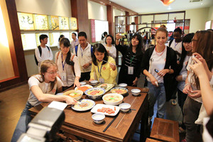 6月24日“海外名校走進(jìn)金華古村落”活動第一季的42名來自世界各國名校教授、學(xué)生乘坐著BRT專車,參觀了金字建設(shè)的中國火腿博覽館和世界火腿博覽館,了解傳承千年的中國火腿文化。想了解現(xiàn)代與傳統(tǒng)交融的金華,金華火腿自然是不可或缺的元素,在金字總部的國內(nèi)首個中國火腿博覽館,學(xué)生們深入地了解了金華火腿文化的千年歷史傳承。在中國火腿博覽館內(nèi),記錄了金華火腿從唐朝起就聞名天下的歷史淵源……
